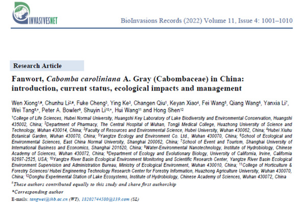 近日,食用野生植物保育与利用湖北省重点实验室与中国科学院水生生物研究所、长江流域生态环境监督管理局生态环境监测与科学研究中心、华中农业大学、华东师范大学、南京林业大学、湖北秀湖植物园、美国加州大学尔湾分校等多家单位合作在国际期刊《Sustainability》(中科院三区)和《BioInvasions Records》(中科院四区)发表多篇研究论文。