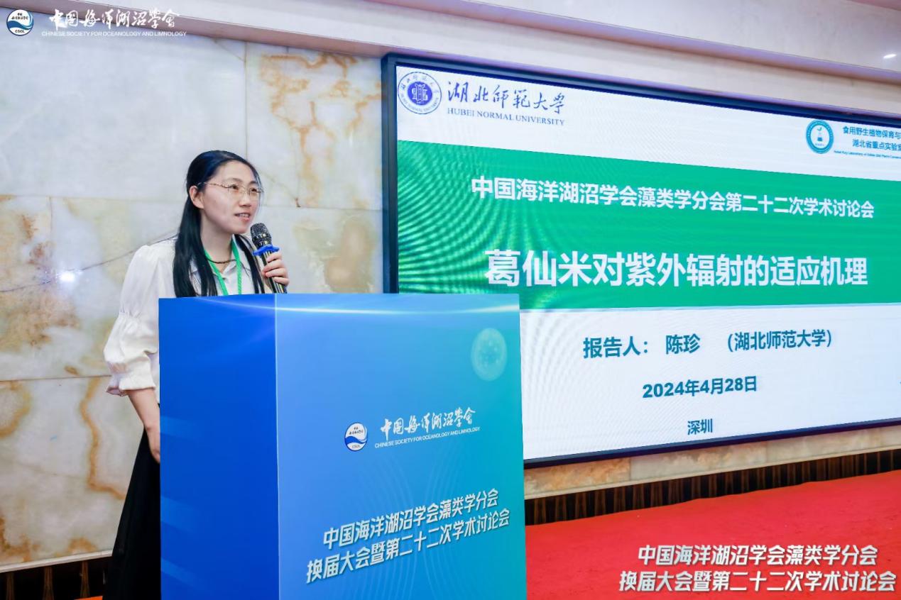 2024年4月26-29日,特色野菜良种繁育与综合利用技术湖北工程中心的藻类生物学研究团队参加了中国海洋湖沼学会藻类学分会第二十一次学术讨论会。此次会议由中国海洋湖沼学会主办,中国科学院海洋研究所和深圳大学承办,来自全国藻类学领域126家相关高校、科研院所和企事业单位的近700名代表参加会议。侯建军教授团队提交了《保安湖超微型浮游细菌的群落演替及其功能预测研究》、《大冶湖光合色素分布及浮游植物类群多样性研究》、《网湖微型浮游植物多样性及其与环境因子间的关系研究》等摘要,陈雄文教授团队陈珍博士在本次研讨会上作学术报告“葛仙米对紫外辐射的适应机理”,充分展示了我院藻类学相关最新研究成果,并与参会研究人员进行了充分交流,为今后开展合作研究提供了积极帮助。