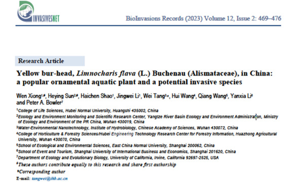 中国是引入外来水生生物种类最多,并受外来物种影响最大的国家。许多外来水生生物作为水产养殖物种、水族箱观赏物种被引入我国并推广到各地。然而,许多外来水生生物作为生态系统工程师(Ecological engineering)能够极大地改变水体理化因子、动植物关系、食物网结构等,最终潜在影响农业生产、水质安全、水生生物多样性和人类健康。本研究通过野外调查和资料整理对引入中国的几种重要外来水生生物(水盾草、黄花蔺、黄菖蒲等)开展系统研究,揭示这些外来物种来源、引入途径、分布范围和分布模式、生态环境和经济影响,从而针对性提出科学管理和防控措施。并且研究发现长江流域现已成为外来水生生物入侵的热点地区,在今后需要进一步加强监测和管理。