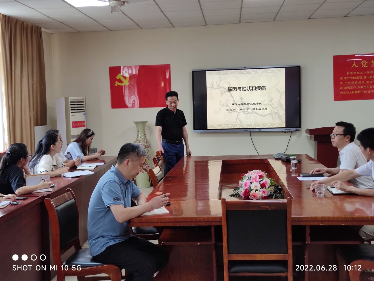 2022年6月28日上午,应食用野生植物保育与利用湖北省重点实验室和特色野菜良种繁育与综合利用技术湖北省工程研究中心的邀请,重庆大学陈国平教授到访我院,并作了题为“基因与性状和疾病”的学术报告。生科院部分领导、教师和研究生参加了报告会,报告会由副院长涂俊铭教授主持。