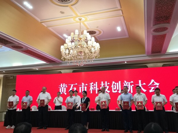 大会表彰了获批国家孵化器的黄石大冶湖高新区科创中心和全市20强高新技术企业,荣获省级科技奖单位,为十大产业技术研究院核心创新团队首席专家颁发聘书,为全市创新争先优秀团队和个人代表颁发荣誉证书,为湖北技术交易大市场黄石分市场和全国科技领军人才创新驱动中心(黄石)揭牌。