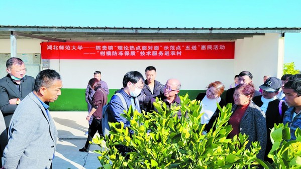 位于陈贵镇的增发生态园流转上罗村土地340余亩,种植特色水果“丑八怪”、美国糖桔等多个优良品种,是上罗村产业脱贫、生态发展的重点项目,但是近两年来,柑橘防冻保质问题给企业造成了不小的损失。活动当天,我院技术专家深入现场(图1),为橘农讲授柑橘越冬防冻保暖管理技术,手把手指导解决现实难题。